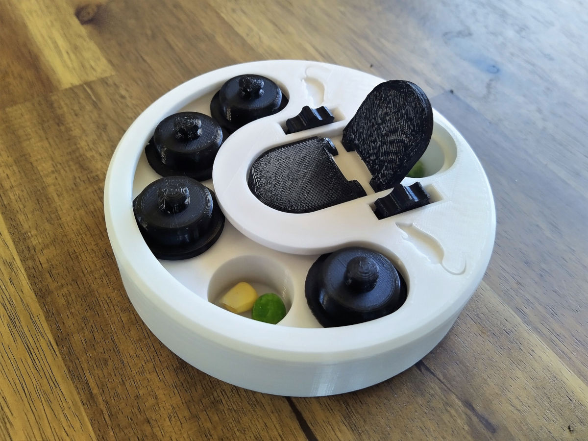 Disappointed with the limited options, we began working on our own foraging toy design, featuring elements tailored to rats' natural instincts and abilities. With the help of our home 3D printer, we brought the first prototype to life!