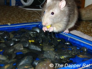 Hiding the frozen veges underneath smooth pebbles increases the difficulty! The Dapper Rat has some great tips when putting together a wading pool for your mischief - check out their other guides while you're on the page!